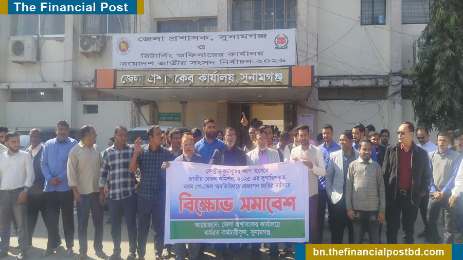 কেন্দ্রীয় কর্মসূচির অংশ হিসেবে জাতীয় বেতন কমিশন -২০২৫ এর সুপারিশকৃত নবম পে- স্কেল অনতিবিলম্বে প্রজ্ঞাপন জারির দাবিতে সুনামগঞ্জে বিক্ষোভ সমাবেশ অনুষ্ঠিত হয়েছে।