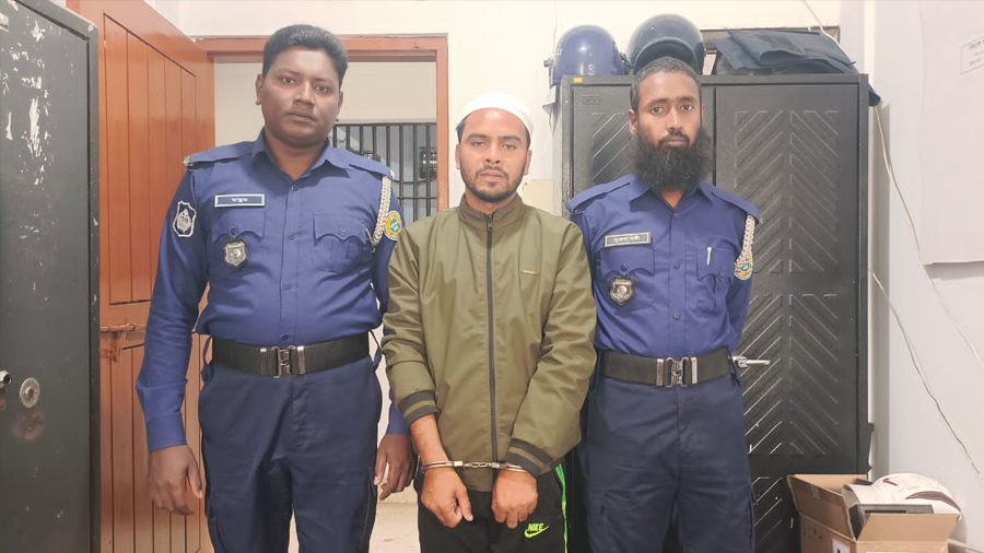 পটুয়াখালীর কুয়াকাটায় ব্যবসা প্রতিষ্ঠানে হামলা ও ভাংচুরের ঘটনার মূল আসামী মাকসুদ আকনকে গ্রেফতার করছে পুলিশ।