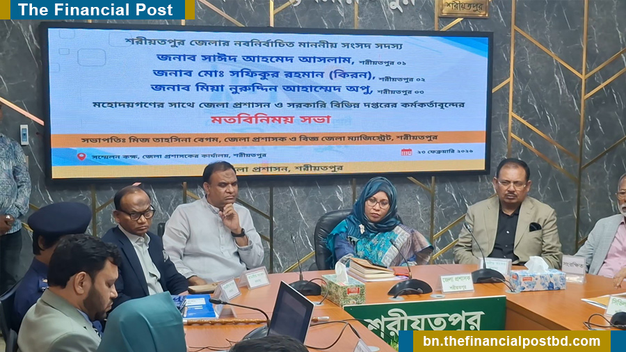 শরীয়তপুরে তিনটি সংসদীয় আসনে নবনির্বাচিত সংসদ সদস্যদের সঙ্গে জেলা প্রশাসন ও সরকারি বিভিন্ন দপ্তরের কর্মকর্তাদের মতবিনিময় সভা অনুষ্ঠিত হয়েছে।