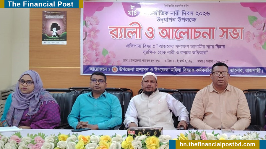 ‘আজকের পদক্ষেপ, আগামীর ন্যায়বিচার; সুরক্ষিত হোক নারী ও কন্যার অধিকার’—এই প্রতিপাদ্যকে সামনে রেখে রাজশাহীর তানোর উপজেলায় আন্তর্জাতিক নারী দিবস পালিত হয়েছে।