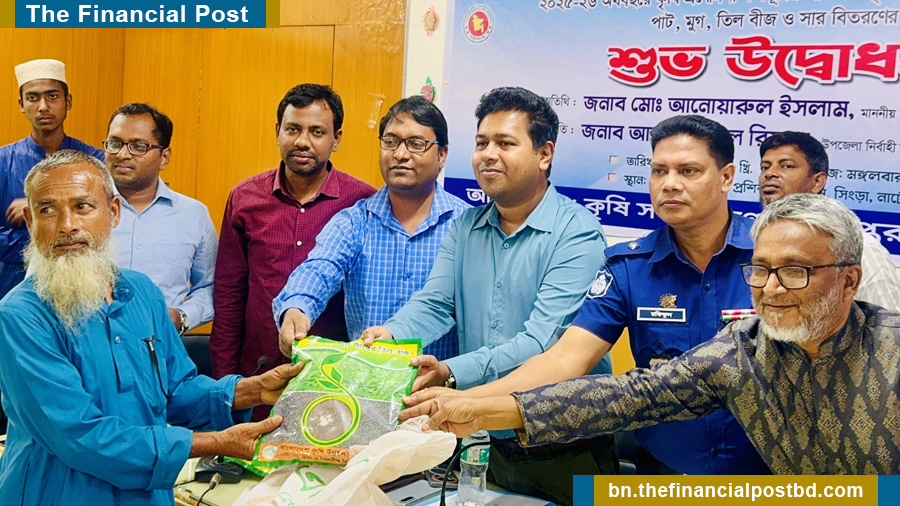 সিংড়া উপজেলা কৃষি কর্মকর্তা খন্দকার ফরিদ জানান, প্রণোদনা কর্মসূচীর আওতায় এক বিঘা করে জমি চাষের জন্য ২৪০ জন কৃষক পাটের এক কেজি করে বীজ এবং পাঁচ কেজি করে ডিএপি ও এমওপি সার, ১০০ জন কৃষক মুগ ডালের পাঁচ কেজি করে বীজ এবং ১০ কেজি ডিএপি ও পাঁচ কেজি এমওপি সার এবং ১০০ জন কৃষক এক কেজি করে তিলের বীজ এবং ১০ কেজি ডিএপি ও পাঁচ কেজি এমওপি সার পাচ্ছেন।