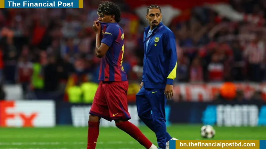 চ্যাম্পিয়ন্স লিগের কোয়ার্টার ফাইনালের দুই লেগেই ১০ জন নিয়ে খেলতে হয়েছে বার্সেলোনাকে। দ্বিতীয় লেগে অ্যাটলেটিকো মাদ্রিদের মাঠে ২-১ গোলে জিতলেও প্রথম লেগের ২-০ ব্যবধানের হারের কারণে টুর্নামেন্ট থেকে বিদায় নিতে হয়েছে কাতালানদের। ইনজুরির কারণে এই ম্যাচে খেলতে না পারলেও সতীর্থদের এমন বিদায় মানতে পারছেন না রাফিনহা। ক্ষুব্ধ এই ব্রাজিলিয়ান তারকার দাবি, রেফারির বিতর্কিত সিদ্ধান্তে বার্সেলোনাকে রীতিমতো ‘লুট’ করা হয়েছে।