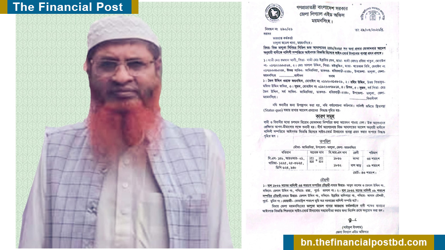 জানা যায়, উপজেলার জামিরদিয়া মৌজার এসএ ১৫০ নং দাগে ৪৩ শতাংশ জমি নিয়ে স্থানীয় জৈন উদ্দিন গং এবং বিবাদী হাজী রমজান আলী ও জালাল উদ্দিনের মধ্যে দীর্ঘদিনের বিরোধ চলছিল, যা আদালত পর্যন্ত গড়িয়েছে। এই সুযোগে বিবাদী পক্ষ ময়মনসিংহ জেলা লিগ্যাল এইড অফিসের সিনিয়র সিভিল জজ সাইফুল ইসলামের নাম ও স্বাক্ষর ব্যবহার করে একটি ভুয়া 'স্থিতাবস্থা' (Status Quo) বা আদেশনামা তৈরি করেন এবং বিরোধপূর্ণ জমিতে সাইনবোর্ড টাঙানোর আসলে ভুক্তভুগীদের সন্দেহ হওয়ায় লিগ্যাল এইড অফিসে যোগাযোগ করলে কর্তৃপক্ষ জানায়, এমন কোনো আদেশ ওই দপ্তর থেকে ইস্যু করা হয়নি।