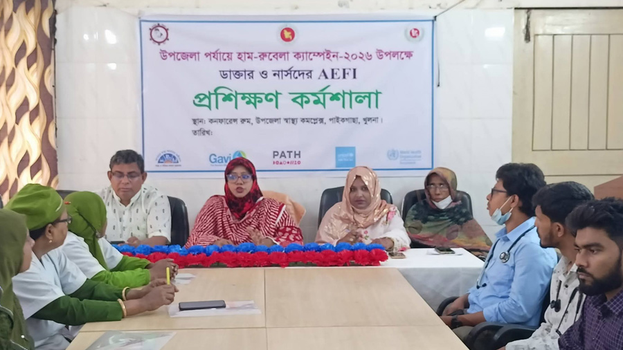 হাম-রুবেলা (এমআর) ভ্যাকসিন ক্যাম্পেইন-২০২৬ সফলভাবে বাস্তবায়নের লক্ষ্যে পাইকগাছা উপজেলা স্বাস্থ্য বিভাগের উদ্যোগে ডাক্তার ও নার্সদের অংশগ্রহণে “এইএফআই (Adverse Events Following Immunization)” বিষয়ক এক প্রশিক্ষণ কর্মশালা অনুষ্ঠিত হয়েছে।