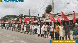 এদিন সকাল ১০টা থেকেই উপজেলার বিভিন্ন এলাকার নারী-পুরুষ, শিক্ষার্থীসহ সর্বস্তরের মানুষ বিভিন্ন লেখা সম্বলিত ব্যানার, ফেস্টুন ও প্লাকার্ড হাতে জড়ো হন। ন্যায়বিচারের দাবিতে তারা প্রথমে উপজেলা নির্বাহী কর্মকর্তার (ইউএনও) কার্যালয়ের সামনে জড়ো হন। সেখানে ক্ষোভ ও বেদনায় ভেঙ্গে পড়া এলাকাবাসী দ্রুত খুনিদের গ্রেফতার ও দৃষ্টান্তমূলক শাস্তির দাবি জানায়।