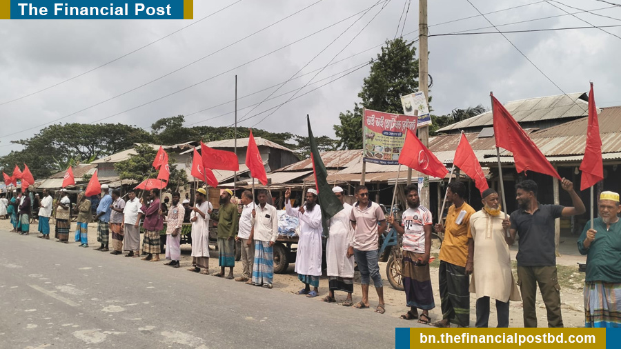 সোমবার (২৭ এপ্রিল) সকাল ১০ টার দিকে উপজেলার পাখিমারা বাজারের ঢাকা- কুয়াকাটা মহাসড়কে এই মানববন্ধনের আয়োজন করে বাংলাদেশ কৃষক সমিতি কলাপাড়া উপজেলা শাখা।