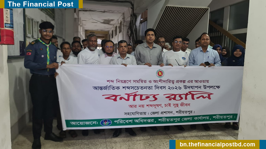 “আর নয় শব্দদূষণ, চাই সুস্থ জীবন” স্লোগানকে সামনে রেখে শব্দদূষণ নিয়ন্ত্রণে সমন্বিত ও অংশীদারিত্বমূলক প্রকল্প” এর আওতায় আন্তর্জাতিক শব্দসচেতনতা দিবস ২০২৬ উপলক্ষে শরীয়তপুরে বর্ণাঢ্য র্যালি ও আলোচনা সভা অনুষ্ঠিত হয়েছে।