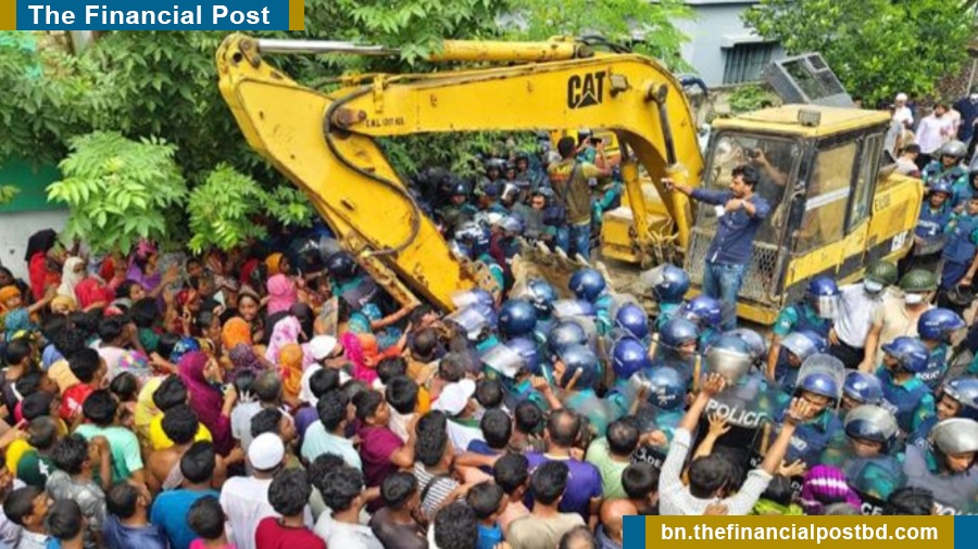 এ সময় স্থানীয়রা ইটপাটকেল নিক্ষেপ করলে পুলিশ পিছু হটতে বাধ্য হয়। পরে পুলিশ টিয়ার সেল নিক্ষেপ করে। এ সময় উচ্ছেদ অভিযানে যাওয়া বুলডেজার গাড়িতে ভাঙচুর করা হয়।
