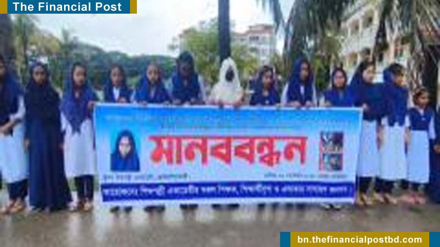 সোমবার দুপুর বারোটার দিকে উপজেলার ছোট বালিয়াতলী ইউনিয়নের শিশুপল্লী একাডেমী প্রাঙ্গনে এ মানববন্ধন কর্মসূচি পালিত হয়। এসময় বক্তব্য রাখেন শিশুপল্লী একাডেমীর ষষ্ঠ শ্রেনীর শিক্ষার্থী আয়শা, সপ্তম শ্রেনীর শিক্ষার্থী হিমা, রাসেল ও সজিব। মানবন্ধন শেষে একটি বিক্ষোভ মিছিল করে শিক্ষার্থীরা।