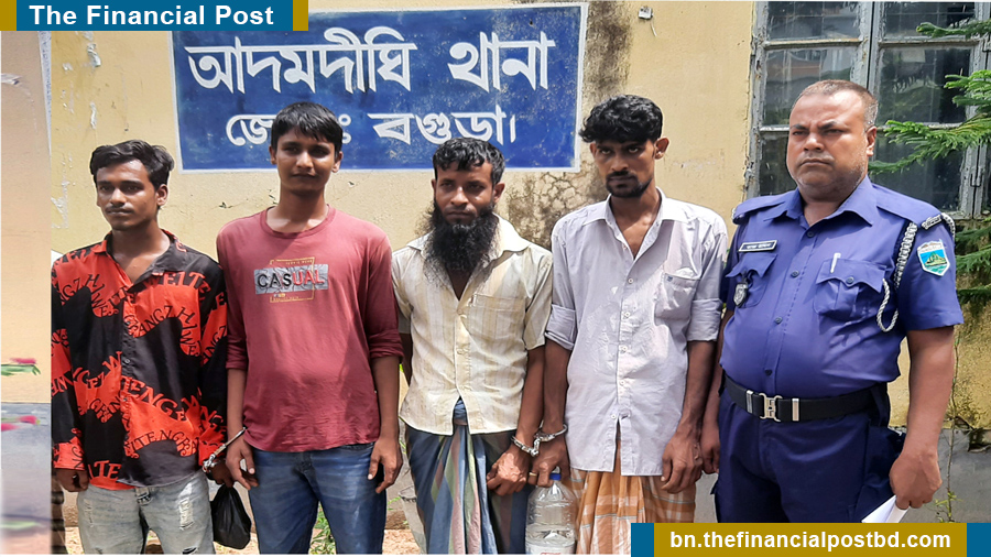 গ্রেপ্তারকৃতরা হলো, আদমদীঘি উপজেলার নসরতপুর ইউপির দত্তবাড়িয়া গ্রামের জহুরুল মন্ডলের ছেলে নাসির মন্ডল (২৬), একই উপজেলার মন্ডবপুর গ্রামের নুরুল ইসলামের ছেলে ওমর ফারুক (৩৪), মুরইল তালুকদারপাড়ার তছির মন্ডলের ছেলে মিরাজ মন্ডল (২৩) ও আল মাহমুদের ছেলে আল সাফা (২২)।