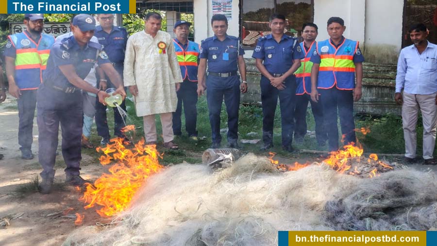 রাজবাড়ী জেলার গোয়ালন্দ উপজেলার দৌলতদিয়া ২ লক্ষ ৫০ হাজার বর্গমিটার অবৈধ কারেন্ট জাল আগুন দিয়ে পুড়িয়ে ধ্বংস করা হয়েছে। যার বাজার মূল্য ৫ লক্ষ টাকা।
