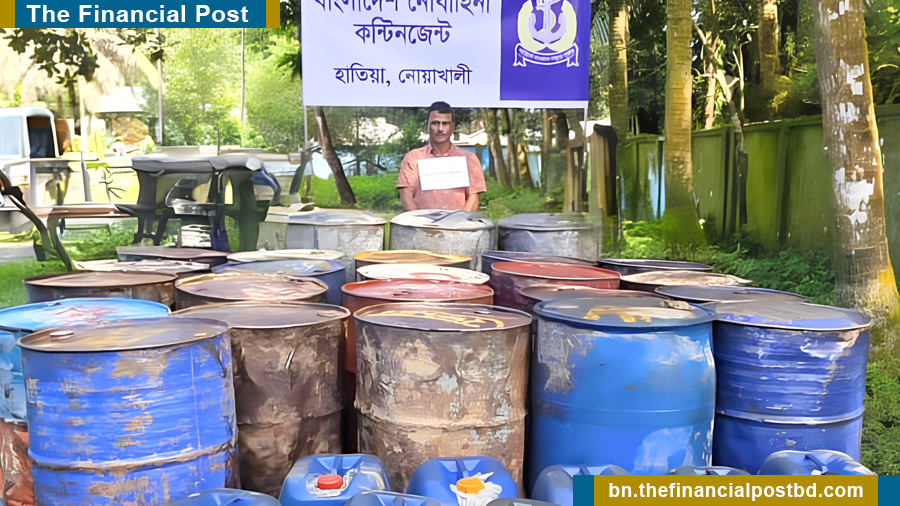 সংবাদ বিজ্ঞপ্তি জানা যায়, বাংলাদেশ নৌবাহিনী দায়িত্বপূর্ণ এলাকা সমুহে মাদক, অস্ত্র, চোরাচালান ও অবৈধ পণ্য পরিবহন রোধসহ আইন-শৃঙ্খলা পরিস্থিতি নিয়ন্ত্রণে নিয়মিত টহল কার্যক্রম পরিচালনা করে আসছে। এরই ধারাবাহিকতায় গতকাল শনিবার দিবাগত রাতে নৌবাহিনীর একটি টহল দল হাতিয়া উপজেলার নলচিরা ঘাট এলাকায় টহল চলাকালীন নৌবাহিনীর গাড়ি দেখামাত্র এক ব্যক্তি একটি দোকানের সামনে থেকে দৌড়ে পালিয়ে যায়। বিষয়টি সন্দেহ হওয়ায় নৌবাহিনী উক্ত দোকানে তল্লাশি করে বিপুল পরিমাণ অবৈধ তেলসহ বেলাল নামে একজন চোরাচালানকারীকে আটক করা হয়।