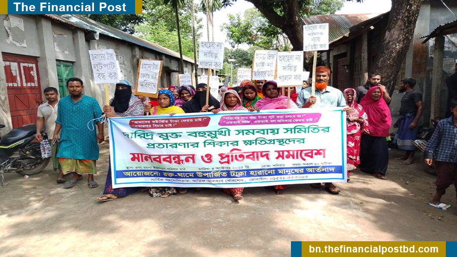 ভুক্তভোগীদের অভিযোগ, ২০০৭ সালে স্থানীয় কিছু প্রভাবশালী ব্যক্তি সমবায় অধিদপ্তর থেকে লাইসেন্স নিয়ে ‘দারিদ্র্যমুক্ত বহুমুখী সমবায় সমিতি লিমিটেড’ নামে একটি বিনিয়োগ প্রতিষ্ঠান গড়ে তোলেন। শুরুতে লোক দেখানো ক্ষুদ্রঋণ কার্যক্রম চালু করলেও, পরে প্রতি লাখ টাকায় মাসে ১ হাজার টাকা লাভের প্রতিশ্রুতি দিয়ে সদস্য সংগ্রহ শুরু করে প্রতিষ্ঠানটি।