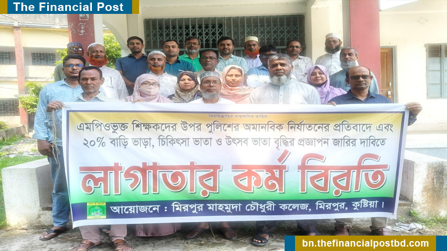 কুষ্টিয়ায় এমপিওভুক্ত শিক্ষকরা অনির্দিষ্টকালের কর্মবিরতি শুরু করেছে।