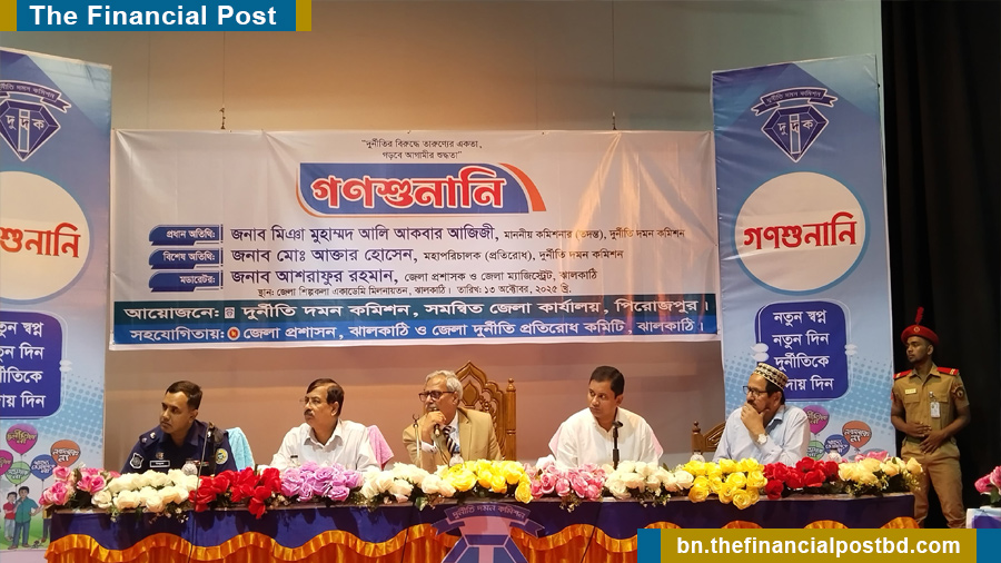 সোমবার (১৩ অক্টোবর) সকালে দুর্নীতি দমন কমিশন (দুদক) পিরোজপুর সমন্বিত জেলা কার্যালয়ের আয়োজনে ঝালকাঠি জেলা প্রশাসক ও জেলা দুর্নীতি প্রতিরোধ কমিটির সহযোগিতায় ঝালকাঠি জেলা শিল্পকলা একাডেমি মিলনায়তনে অনুষ্ঠিত গণশুনানিতে প্রধান অতিথির বক্তব্যে তিনি এসব কথা বলেন।