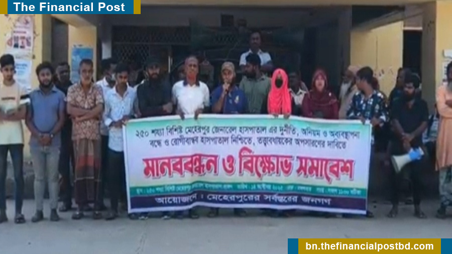 ২৫০ শয্যা বিশিষ্ট মেহেরপুর জেনারেল হাসপাতালে দুর্নীতি, অনিয়ম ও অব্যবস্থাপনা বন্ধে এবং রোগীবান্ধব হাসপাতাল নিশ্চিতকরণসহ বর্তমান তত্ত্বাবধায়কের অপসারণের দাবিতে মানববন্ধন ও বিক্ষোভ সমাবেশ অনুষ্ঠিত হয়েছে।