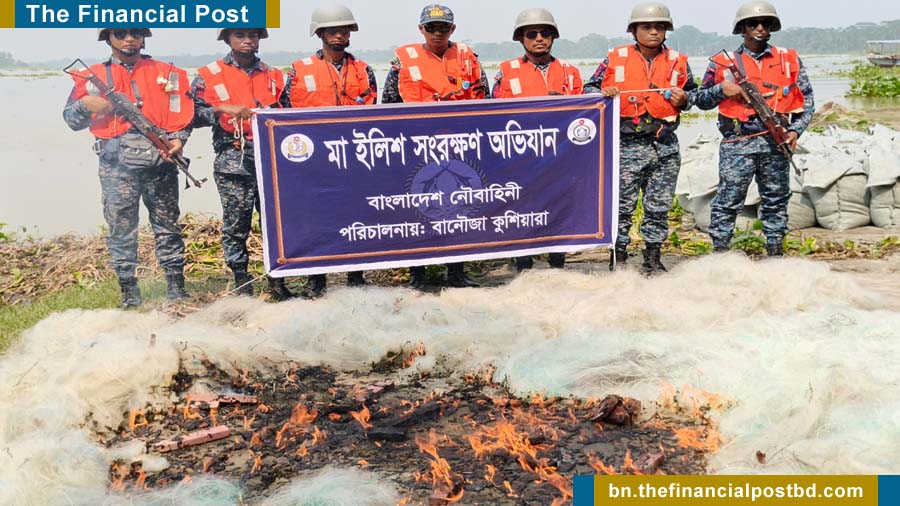 পিরোজপুরে মা ইলিশ সংরক্ষণ অভিযানে সাড়ে ১০ লাখ টাকার অবৈধ জাল জব্দ
