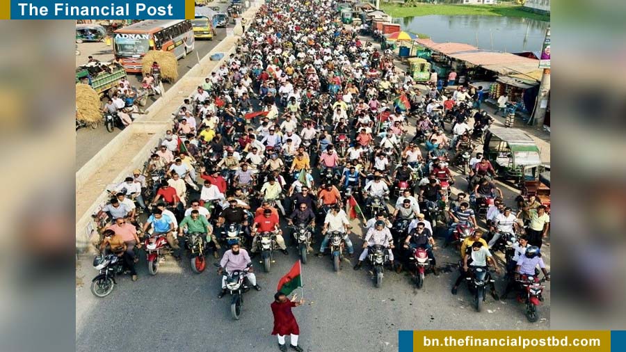 এসময় প্রায় দেড় হাজার মোটরসাইকেল নিয়ে বিশাল শোভাযাত্রা করে সভাস্থলে যোগ দেন বিএনপি নেতাকর্মীরা।