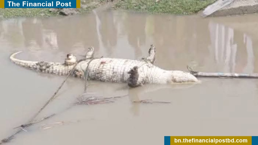 গলায় ফাঁস লাগানো কুমিরটি ভাসছিল নদীতে