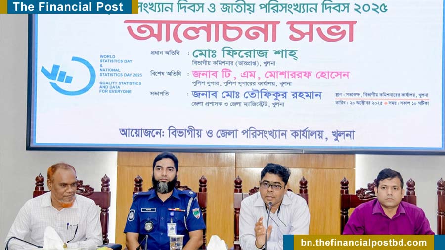 'সবার জন্য মানসম্মত পরিসংখ্যান' এই পতিপাদ্য নিয়ে আজ সোমবার (২০অক্টোবর) খুলনায় বিশ্ব পরিসংখ্যান দিবস ও জাতীয় পরিসংখ্যান দিবস পালন করা হয়। এ উপলক্ষ্যে সকালে খুলনার বিভাগীয় কমিশনারের সম্মেলনকক্ষে আলোচনা সভা অনুষ্ঠিত হয়। অনুষ্ঠানে প্রধান অতিথি ছিলেন বিভাগীয় কমিশনার (ভারপ্রাপ্ত) মোঃ ফিরোজ শাহ।