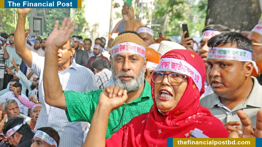 মূল বেতনের ২০ শতাংশ হারে বাড়িভাড়া বৃদ্ধিসহ তিন দফা দাবিতে অনশন করছেন এমপিওভুক্ত বেসরকারি প্রতিষ্ঠানের শিক্ষকরা। চলমান এ কর্মসূচিতে এরইমধ্যে এমপিওভুক্ত শিক্ষা জাতীয়করণপ্রত্যাশী জোটের সভাপতি এবং বাংলাদেশ মাদ্রাসা শিক্ষক-কর্মচারী ফোরামের সদস্যসচিব অধ্যক্ষ দেলাওয়ার হোসাইন আজিজীসহ ৬ শিক্ষক অসুস্থ হয়ে পড়েছেন।