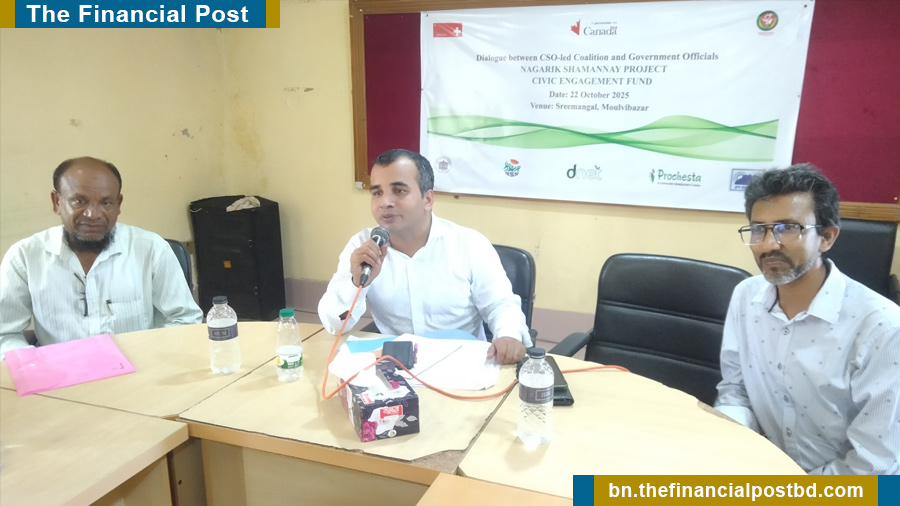 সুশাসন, জবাবদিহিতা ও নাগরিক অংশগ্রহণ বৃদ্ধির লক্ষ্যে শ্রীমঙ্গলে অনুষ্ঠিত হলো ‘সিভিল সোসাইটি সংগঠনের নেতৃত্বাধীন জোট ও সরকারি কর্মকর্তাদের মধ্যে সংলাপ’।
