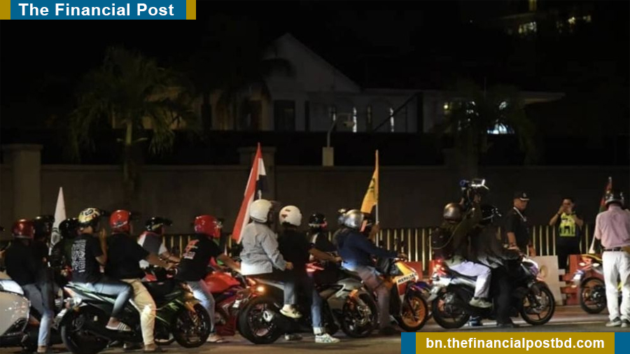 বিক্ষোভকারীরা রাত প্রায় ১০টার দিকে যুক্তরাষ্ট্রের দূতাবাসের সামনে দিয়ে মোটরসাইকেল কনভয়ে অতিক্রম করেন। তাদের মধ্যে কেউ কেউ ফিলিস্তিনের পতাকা বহন করছিলেন এবং যুক্তরাষ্ট্রের ইসরাইলপন্থি নীতির বিরুদ্ধে স্লোগান দিচ্ছিলেন। তারা ‘মালয়েশিয়া জাগো, ট্রাম্পকে তাড়াও’ বলে স্লোগান দেন।