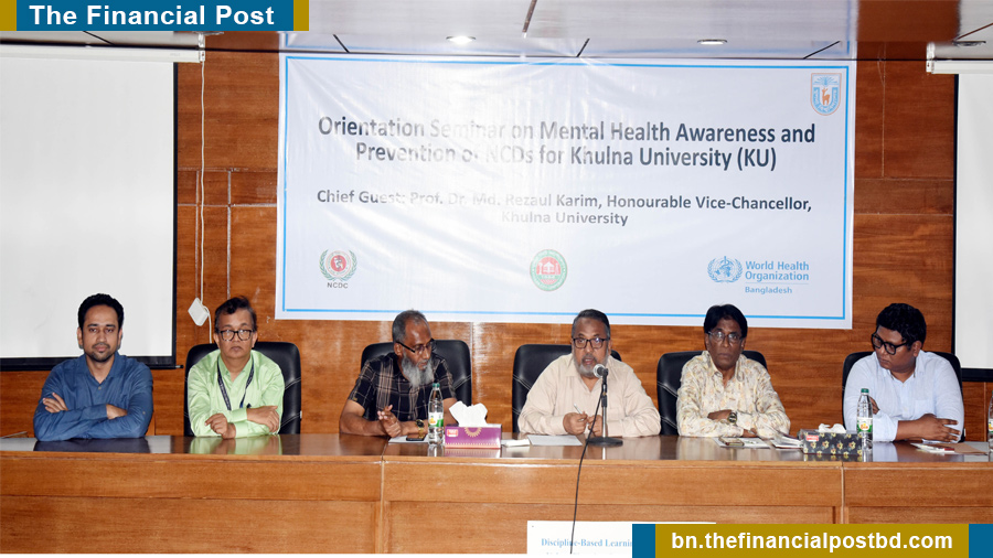 খুলনা বিশ্ববিদ্যালয়ে শিক্ষার্থীদের মানসিক স্বাস্থ্য সুরক্ষায় সচেতনতা তৈরির লক্ষ্যে এক সেমিনার অনুষ্ঠিত হয়েছে। সোমবার (২৭ অক্টোবর) সকাল সাড়ে ১০টা থেকে দুপুর ২টা ৩০ মিনিট পর্যন্ত বিশ্ববিদ্যালয়ের ইউআরপি ডিসিপ্লিনের লেকচার থিয়েটারে এ সেমিনার আয়োজন করা হয়। বিশ্ব স্বাস্থ্য সংস্থা (ডব্লিউএইচও) ও খুলনা বিশ্ববিদ্যালয়ের যৌথ উদ্যোগে এবং খুলনা সিটি কর্পোরেশনের সহযোগিতায় সেমিনারটি অনুষ্ঠিত হয়।