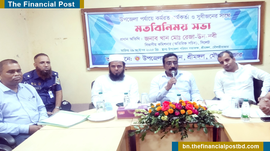 সিলেটের বিভাগীয় কমিশনার খান মো. রেজা উন নবী বুধবার বিকেলে শ্রীমঙ্গলে উপজেলা পর্যায়ে কর্মরত কর্মকর্তা ও সুধীজনদের সাথে এক মতবিনিময় সভায় অংশ নেন।