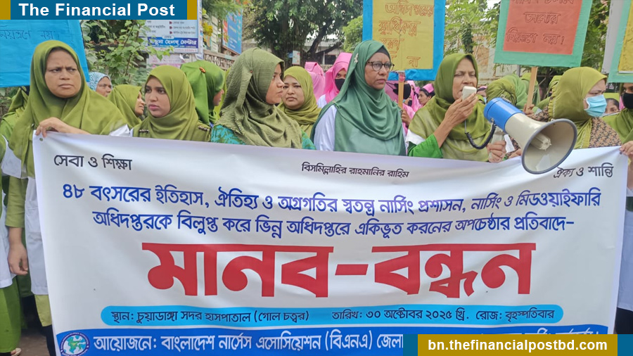 ৪৮ বৎসরের ইতিহাস ঐতিহ্য ও অগ্রগতির স্বতন্ত্র নার্সিং প্রশাসন, নার্সিং ও মিড ওয়াইফারি অধিদপ্তরেকে বিলুপ্ত করে ভিন্ন অধিদপ্তরে একিভূত করণের অপচেষ্ঠার প্রতিবাদে সারা দেশের ন্যায় চুয়াডাঙ্গা জেলায় একযোগে মানববন্ধন কর্মসূচি পালন করা হয়েছে।