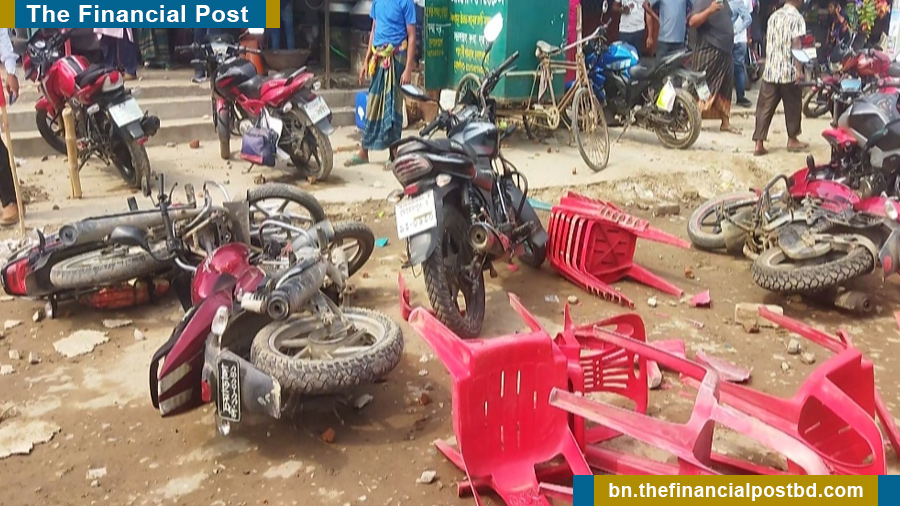 এদিকে হামলার খবর পেয়ে হাসপাতাল বাজার থেকে উপজেলা বিএনপির সাবেক সাধারণ সম্পাদক আসাদুজ্জামান বাবলুর নেতৃত্বে আমজাদ হোসেন পক্ষের নেতাকর্মীরা একটি মিছিল বের করে বাসস্ট্যান্ডে আসেন। এসময় আমজাদ হোসেন পক্ষের উত্তেজিত নেতাকর্মীরা জাভেদ মাসুদ মিল্টনের অফিসের হামলা চালায়। অফিসের ভেতরে থাকা আসবাবপত্র এবং চেয়ার বের করে আগুন ধরিয়ে দেয়। শেষ খবর পাওয়া পর্যন্ত আমজাদ হোসনের নেতৃত্বে শহরে বিক্ষোভ মিছিল চলছে।