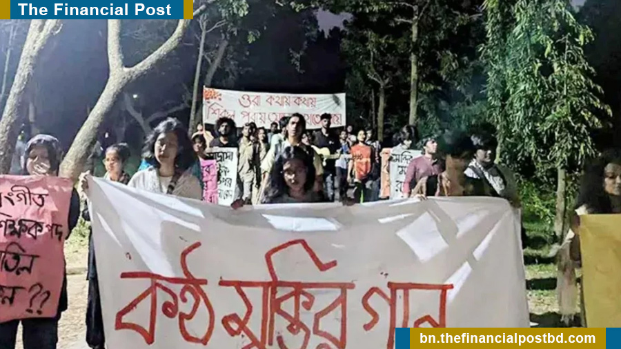 প্রাথমিক বিদ্যালয়ে সংগীত ও শরীরচর্চা শিক্ষক নিয়োগের পদ বাতিলের প্রতিবাদে ‘গানের মিছিল’ করেছে জাহাঙ্গীরনগর বিশ্ববিদ্যালয়ের (জাবি) একদল শিক্ষার্থী।
