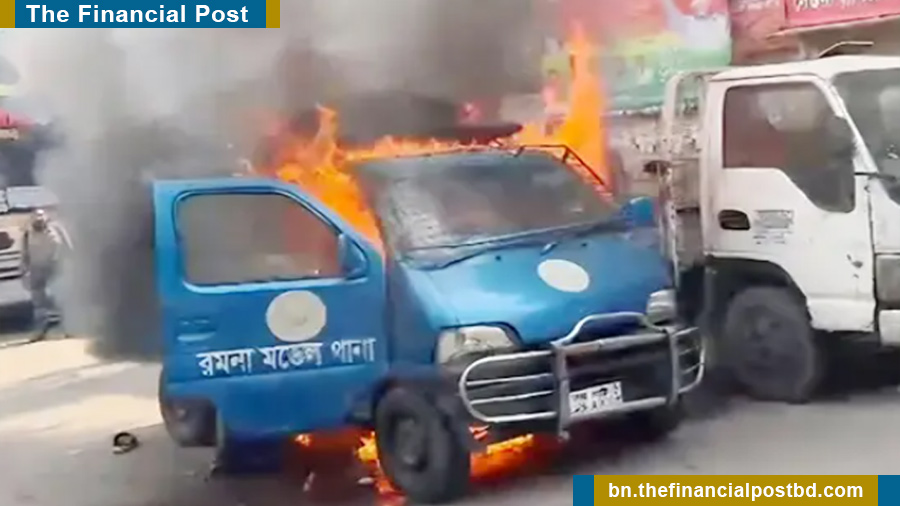 রমনা থানার সামনে হঠাৎ পুলিশের গাড়িতে আগুন