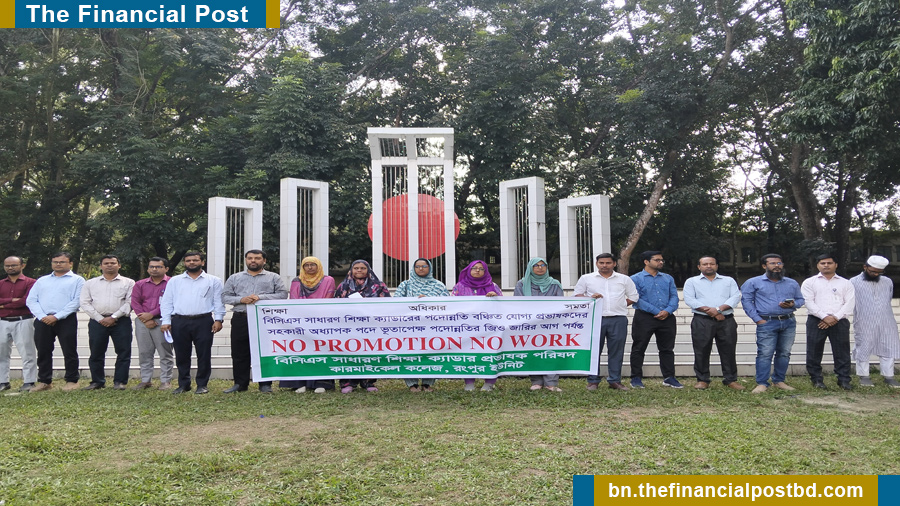 শিক্ষা-অধিকার-সমতা এই বাক্যগুলোকে মনে ধারণ করে বিসিএস সাধারণ শিক্ষা ক্যাডারের পদোন্নতি বঞ্চিত যোগ্য প্রভাষকদের সহকারী অধ্যাপক পদে ভূতাপেক্ষ পদোন্নতির জিও জারির আগ পর্যন্ত “নো প্রমোশন, নো ওয়ার্ক” কর্মসূচি পালন করছেন। এরই অংশ হিসেবে রোববার (১৬ নভেম্বর) দুপুরে বিসিএস সাধারণ শিক্ষা ক্যাডার প্রভাষক পরিষদ কারমাইকেল কলেজ, রংপুর ইউনিটের আয়োজনে কারমাইকেল কলেজ শহিদ মিনার চত্বরে দাড়িয়ে “নো প্রমোশন, নো ওয়ার্ক” কর্মসূচি পালন করেন।