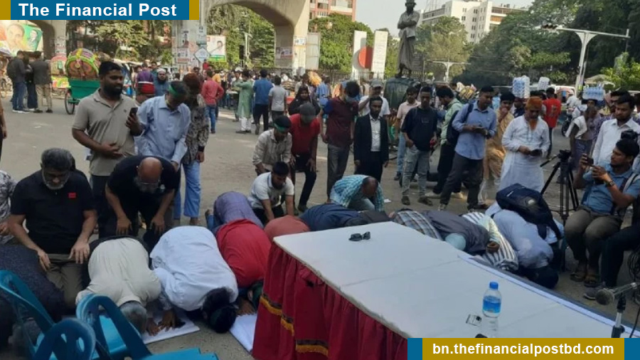 সোমবার (১৭ নভেম্বর) বিকেল ৩টার দিকে রাজধানীর হাই কোর্টের মাজার গেটের পাশে এই গণ সিজদাহ্ দেওয়া হয়। পরে মোনাজাত অনুষ্ঠিত হয়।