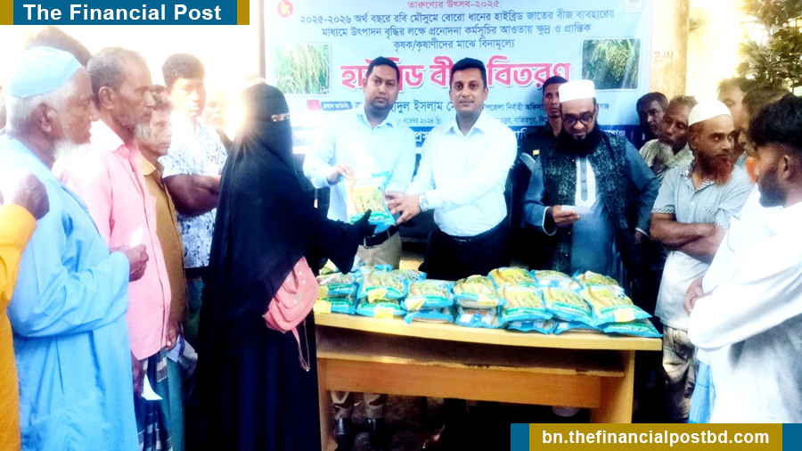 রবি মৌসুমে বোরো ধানের হাইব্রিড জাতের বীজ ব্যবহারের মাধ্যমে উৎপাদন বৃদ্ধি ও কৃষকদের আর্থিকভাবে শক্তিশালী করতে কিশোরগঞ্জের বাজিতপুরে ‘তারুণ্য উৎসব ২০২৫’ ও প্রণোদনা কর্মসূচির আওতায় ক্ষুদ্র ও প্রান্তিক কৃষক- কৃষাণীদের মাঝে বিনামূল্যে হাইব্রিড বোর ধানের বীজ বিতরণ করা হয়েছে।