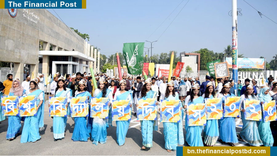 দিবসটি উপলক্ষ্যে সকাল ১০টায় বিশ্ববিদ্যালয়ের মেইন গেট ‘শহিদ মীর মুগ্ধ তোরণ’ থেকে বর্ণাঢ্য শোভাযাত্রা বের করা হয়। শোভাযাত্রাটি দ্বিতীয় গেট ঘুরে অদম্য বাংলা চত্বরে গিয়ে শেষ হয়। শোভাযাত্রায় খুলনা বিশ্ববিদ্যালয়ের প্রথম উপাচার্য প্রফেসর ড. মো. গোলাম রহমান এর নেতৃত্বে বর্তমান উপাচার্য প্রফেসর ড. মোঃ রেজাউল করিম, উপ-উপাচার্য প্রফেসর ড. মো. হারুনর রশীদ খান, ট্রেজারার প্রফেসর ড. মোঃ নূরুন্নবী এবং বিভিন্ন স্কুলের ডিন, রেজিস্ট্রার (ভারপ্রাপ্ত), ডিসিপ্লিন প্রধান, ছাত্র বিষয়ক পরিচালক, প্রভোস্ট, বিভাগীয় পরিচালকসহ শিক্ষক-শিক্ষার্থী ও কর্মকর্তা-কর্মচারীবৃন্দ অংশগ্রহণ করেন।