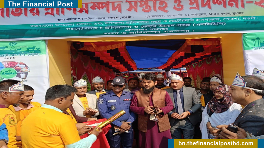 “দেশীয় জাত, আধুনিক প্রযুক্তি: প্রাণিসম্পদে হবে উন্নতি” প্রতিপাদ্যের আলোকে নওগাঁর পোরশায় উপজেলা প্রাণিসম্পদ দপ্তর ও ভেটেরিনারি হাসপাতালের আয়োজনে ৭দিন ব্যাপি প্রাণিসম্পদ সপ্তাহ ও প্রদর্শনী-২৫ এর উদ্বোধন করা হয়েছে।