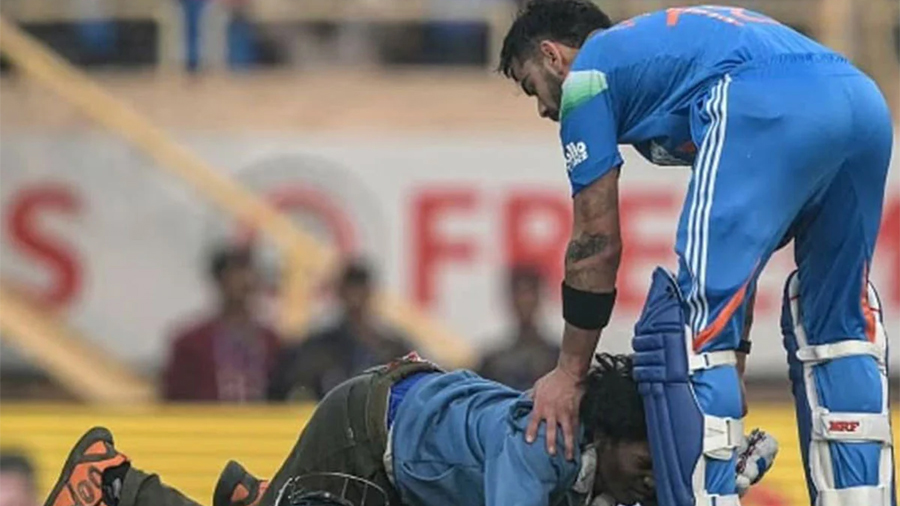 রবিবার ভারতের ঝাড়খণ্ডের রাঁচি স্টেডিয়ামে ভারত-দক্ষিণ আফ্রিকা আন্তর্জাতিক ম্যাচ চলছিল। ২২ গজের ক্রিজে তখন দাপটের সঙ্গে ব্যাট করছে বিরাট। শতরানের গণ্ডি পেরিয়ে প্যাভিলিয়নের দিকে ব্যাট তুলতেই ছন্দপতন। সেই সময় নিরাপত্তা বেষ্টনী পেরিয়ে এক দৌঁড়ে বিরাট কোহলির পা ছুঁয়ে শুয়ে পড়ে এক যুবক। সমস্ত ক্যামেরার ফোকাশ তখন সেদিকেই। ততক্ষণে নিরাপত্তারক্ষীরা তাকে ধরে ফেলেছেন। যদিও যুবকের মুখে স্বপ্নপূরণের অভিব্যক্তি। তবে স্বপ্নপূরণ হলেও বর্তমানে তার ঠাঁই কারাগারে।
