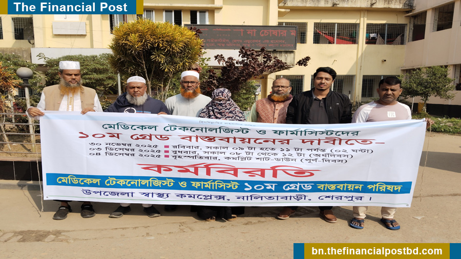 নালিতাবাড়ীতে মেডিকেল টেকনোলজিস্ট ও ফার্মাসিস্টদের অর্ধদিবস কর্মবিরতি