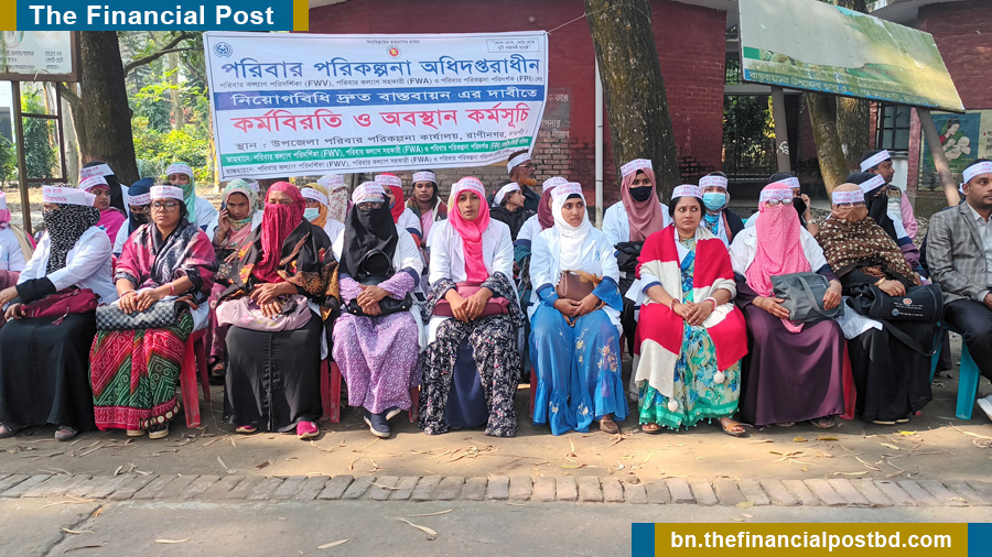 নিয়োগবিধি দ্রুত বাস্তবায়নের দাবিতে নওগাঁর রাণীনগর উপজেলায় কর্মবিরতি ও অবস্থান কর্মসূচি পালন করেছে পরিবারকল্যাণ কর্মীরা।