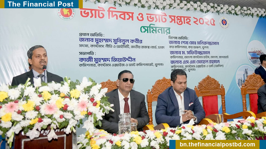 ‘সময়মত নিবন্ধন নিব, সঠিকভাবে ভ্যাট দিব’ এই প্রতিপাদ্যকে সামনে রেখে ভ্যাট দিবস ও ভ্যাট সপ্তাহ উদযাপন উপলক্ষ্যে সেমিনার বুধবার (১০ ডিসেম্বর) দুপুরে খুলনা সিটি ইনে অনুষ্ঠিত হয়। অনুষ্ঠানে প্রধান অতিথি ছিলেন জাতীয় রাজস্ব বোর্ড কাস্টমস: নীতি ও আইসিটি সদস্য মুহাম্মদ মুবিনুল কবীর।