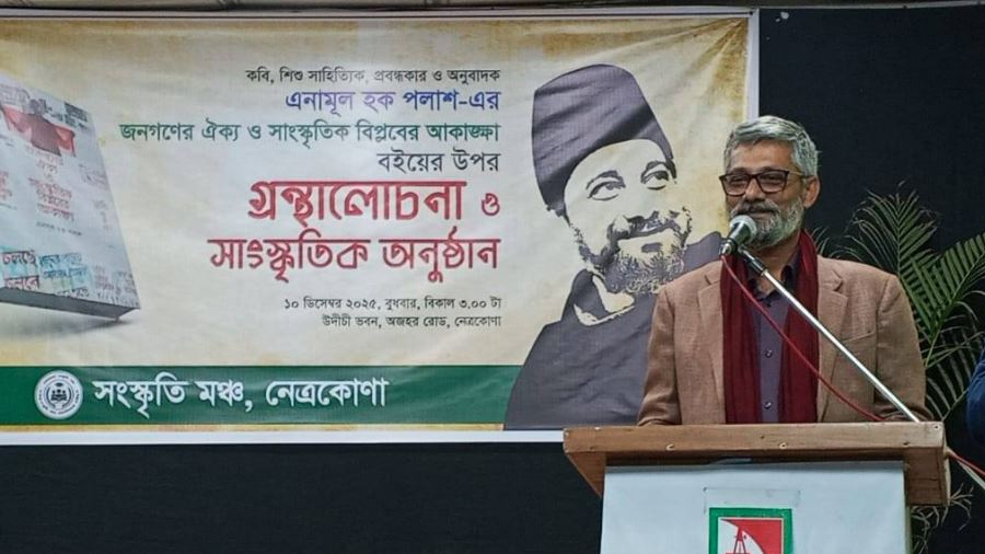 কবি ও চিন্তক এনামূল হক পলাশের ‘জনগণের ঐক্য ও সাংস্কৃতিক বিপ্লবের আকাঙ্ক্ষা’ বইয়ের গ্রন্থালোচনা অনুষ্ঠিত হয়েছে।