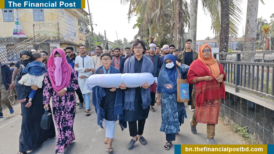 ওসমান হাদীর প্রতিকী লাশ নিয়ে মিছিলে ঘুহুর মুহুর স্লোগানে নিস্তব্ধ হয়ে যায় শহরের আশেপাশ।