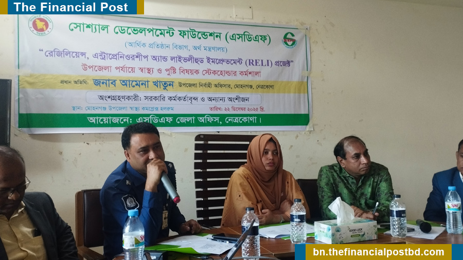 সোশ্যাল ডেভেলপমেন্ট ফাউন্ডেশন (এসডিএফ) নেত্রকোনা জেলা অফিসের আয়োজনে, মোহনগঞ্জে অনুষ্ঠিত হয়েছে, উপজেলা পর্যায়ে স্বাস্থ্য ও পুষ্টি বিষয়ক স্টেকহোল্ডার কর্মশালা।