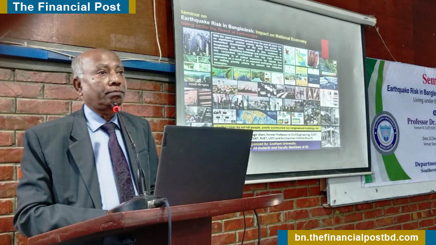 সাউদার্ন ইউনিভার্সিটির পুরকৌশল বিভাগের উদ্যোগে বাংলাদেশে ভূমিকম্পের ঝুঁকি : জাতীয় অর্থনীতিতে প্রভাব শীর্ষক সেমিনার (২২ ডিসেম্বর) সোমবার বিশ্ববিদ্যালয়ের হল রুমে অনুষ্ঠিত হয়েছে। সেমিনারে মুল প্রবন্ধ উপস্থাপন করেন চুয়েট, রুয়েট ও ইউএসটিসির সাবেক উপাচার্য, বিশিষ্ট শিক্ষাবিদ ও ভূমিকম্পন গবেষক অধ্যাপক ড. মো. জাহাঙ্গীর আলম।