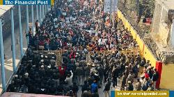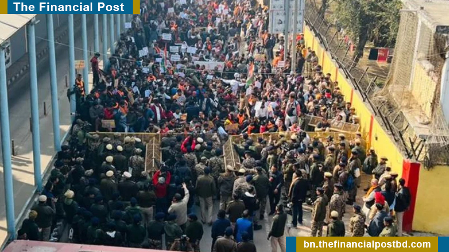 প্রেস ট্রাস্ট অব ইন্ডিয়া (পিটিআই) প্রকাশিত ভিডিওতে দেখা গেছে, কয়েক’শ বিক্ষোভকারীকে বাধা দিতে ব্যারিকেড তৈরি করে পুলিশ। কিন্তু বিক্ষোভকারীরা এক পর্যায়ে ব্যারিকেড ভেঙে ফেলে। পরে পুলিশের সঙ্গে তাদের সংঘর্ষ হয়।
