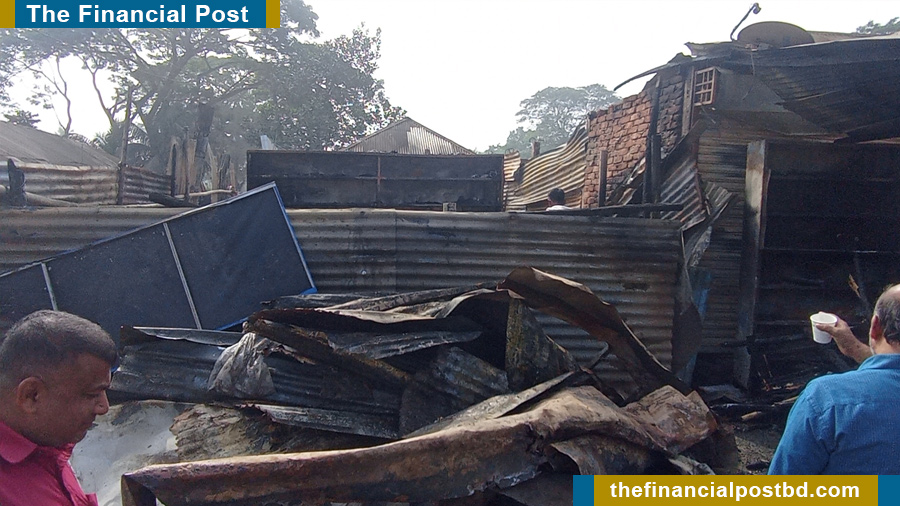 গভীর রাতে আগুনে পুড়ে গেছে পাঁচটি দোকান। নিজের পরিচালিত ব্যবসা প্রতিষ্ঠান পুড়ে নিঃস্ব হয়ে আহাজারি করছেন দোকানীরা। প্রাথমিকভাবে ধারণা করা হচ্ছে প্রায় এক কোটি টাকার দোকানের মালামাল পুড়ে ছাই হয়ে গেছে।
