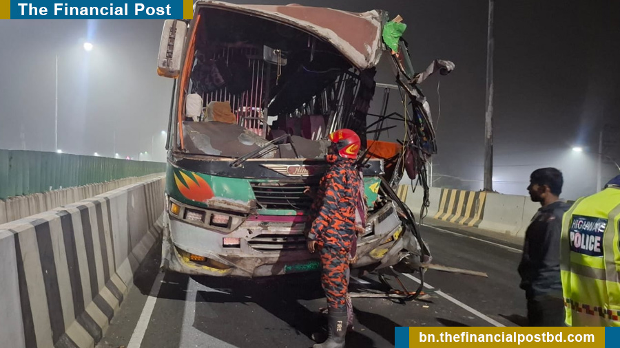 ঘন কুয়াশায় ঢাকা–মাওয়া এক্সপ্রেসওয়ের মুন্সীগঞ্জের শ্রীনগর উপজেলার ছনবাড়ী ব্রিজ এলাকায় ঢাকা থেকে ছেড়ে আসা বাস নিয়ন্ত্রণ হারিয়ে ট্রাকের পিছনে সজোরে ধাক্কা মারে। এ ঘটনায় বাসে থাকা নারীসহ অন্তত ছয়জন গুরুতর আহত হয়।
