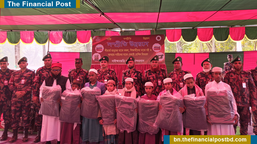 বান্দরবানের সীমান্তবর্তী নাইক্ষ্যংছড়ি উপজেলায় পাহাড়ি-বাঙালি জনগোষ্ঠীর মধ্যে সম্প্রীতি ও সামাজিক বন্ধন জোরদারে নাইক্ষ্যংছড়ি ব্যাটালিয়নের (১১ বিজিবি) উদ্যোগে শীতার্ত মানুষের মাঝে কম্বল, শিক্ষার্থীদের মাঝে শিক্ষা উপকরণ এবং অসহায় নারীদের মাঝে সেলাই মেশিন বিতরণ করা হয়েছে।